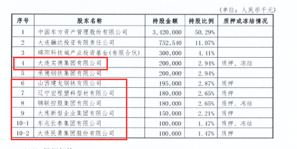 根据大连银行股权的资产评估报告显示,截至目前,除了东兆长泰外,第四大股东大连实德和第八大股东锦联控股质押受中的大连银行股权,并遭到司法冻结;山西建龙钢铁、辽宁宏程塑料、大连民勇等股东均将手中持有的大连银行股权全部质押。