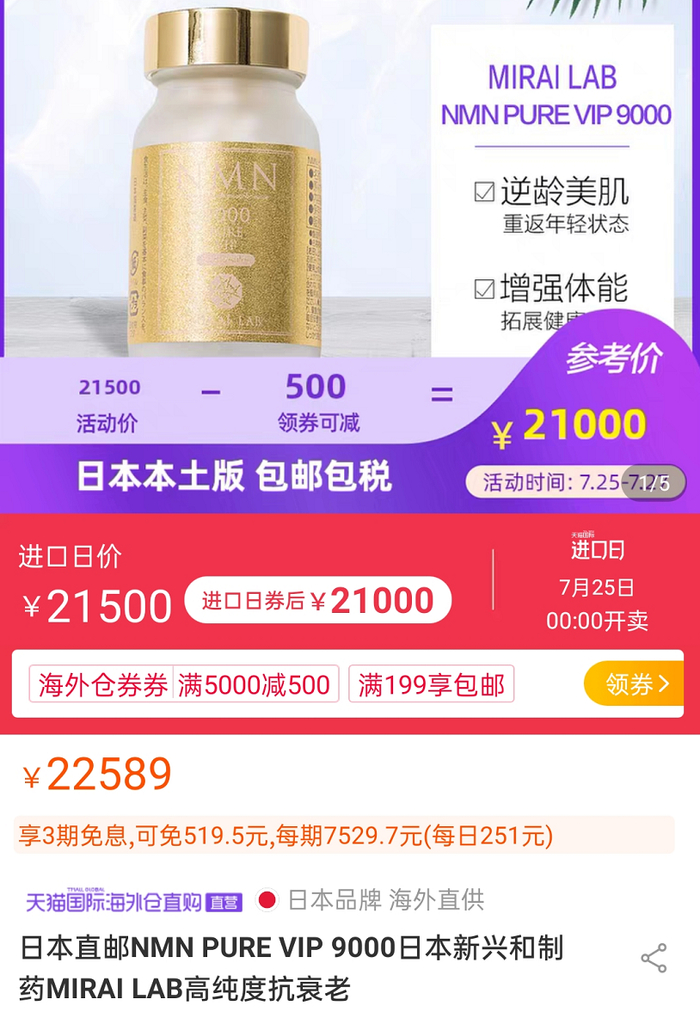 其实,NMN 并不是一款新产品,早2017年,NMN 便已经成了富豪圈的爆款“长寿药”。