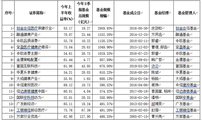 表1:上半年绩优医药基金规模增长情况