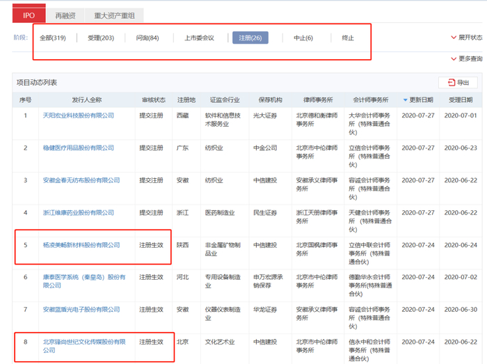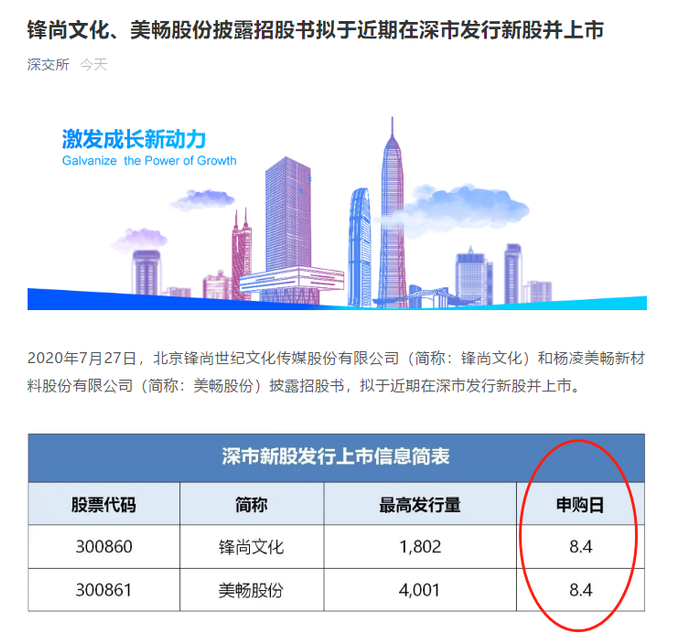 7月27日晚间,深交所官方微信公号发布,2020年7月27日,北京锋尚世纪文化传媒股份有限公司(简称:锋尚文化)和杨凌美畅新材料股份有限公司(简称:美畅股份)披露招股书,拟于近期在深市发行新股并上市。