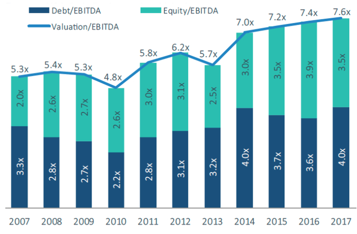 2007年-2017年欧洲并购基金历年估值倍数