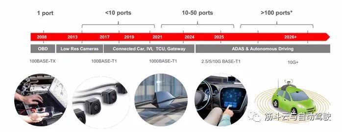 ▼ 随着车载功能的增加以太网端口数量也在快速增长