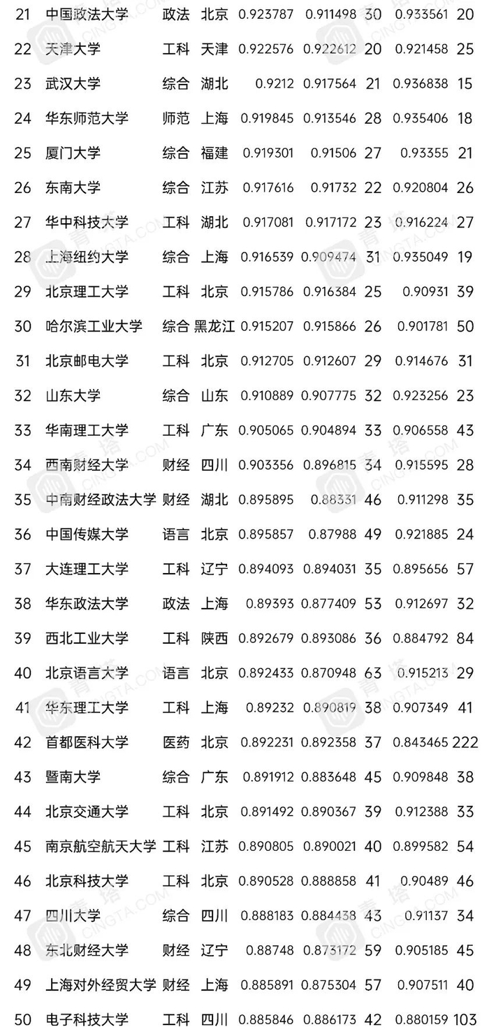 西安交大位居西部地区榜首,科教重镇武汉暂无高校上榜,C9联盟中,唯有哈工大没有进入Top20。