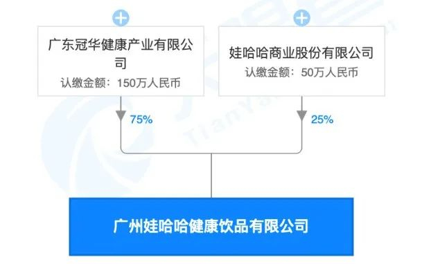 据娃哈哈官微介绍,娃哈哈奶茶店项目由广州娃哈哈健康饮品有限公司负责运营。投中网查阅工商信息发现,2019年9月,广东冠华与娃哈哈商业股份有限公司合资成立了一家名为广州娃哈哈健康饮品有限公司,该合资公司负责娃哈哈奶茶加盟的事务,广东冠华和娃哈哈商业的股权占比分别为75%和25%,属于娃哈哈授权合作伙伴运营。当前,其授权的奶茶品牌已在江苏淮安、广州白云、福建长乐、广西钦州四处落地。