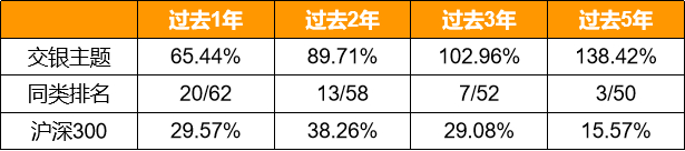 从中长期业绩看,交银主题过去1年、2年、3年、5年收益率分别为65.44%、89.71%、102.96%、138.42%,且都超过同期沪深300涨幅,其中过去3年、5年的收益率在同类基金中排前7名以内。