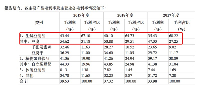 招股书显示,公司从创建至今,始终专注于豆制品的研发、生产和销售,目前主要生产和销售生鲜豆制品、植物蛋白饮品、休闲豆制品等三大主要系列400余种产品。