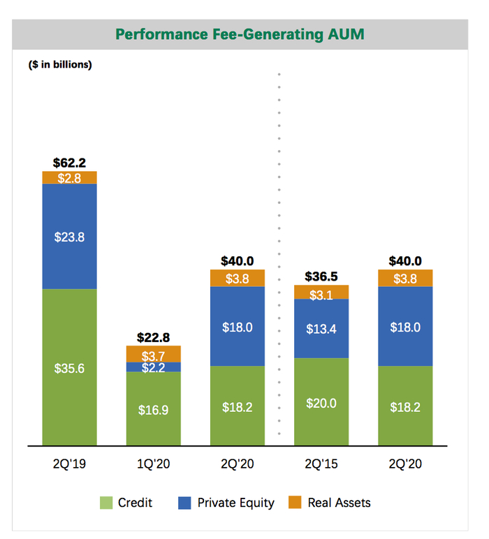 值得一提的是,阿波罗产生投资报酬的管理资产(Performance Fee-Generating AUM)已达400亿美元。在财报中,阿波罗将其归因为“PE投资组合升值的推动”。
