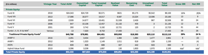 截至2020年Q2,阿波罗共管理九只PE基金,PE业务总内部收益率(Gross IRR)达39%,净内部收益率(Net IRR)达24%。