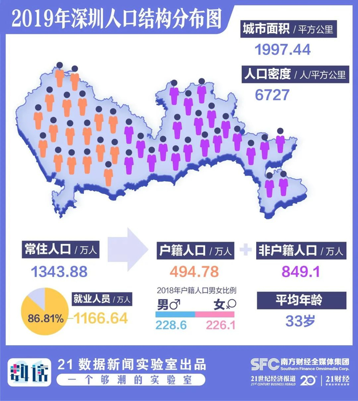 深圳这座典型的移民城市,包容性极强,外来人口占比极高。据深圳统计局公布数据显示,2019年深圳常住人口有1343.88万人,其中非户籍人口849.1万人,占比超63%。