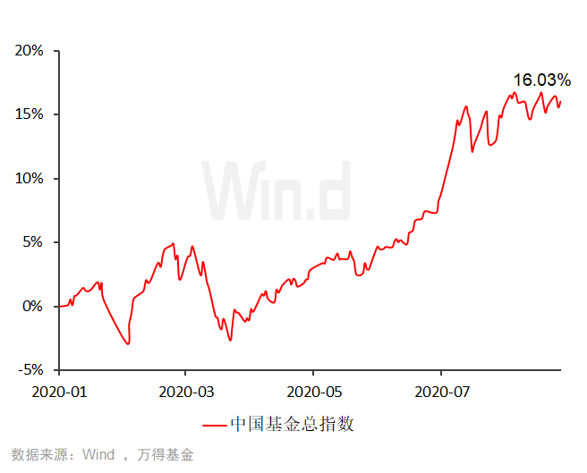 今年以来,在资金纷纷向公募迁移的背后是公募基金傲人的业绩。Wind数据显示,今年以来至8月27日,中国基金总指数已上涨16.03%。该指数是采用等权方法编制,换言之,今年以来公募基金平均收益为16.03%。