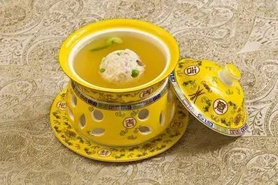 ——氽煨:“汤浴绣丸”,用碎肉和鸡蛋做成大如绣球的丸子,想象成扬州狮子头就行,下热汤氽煨成型。