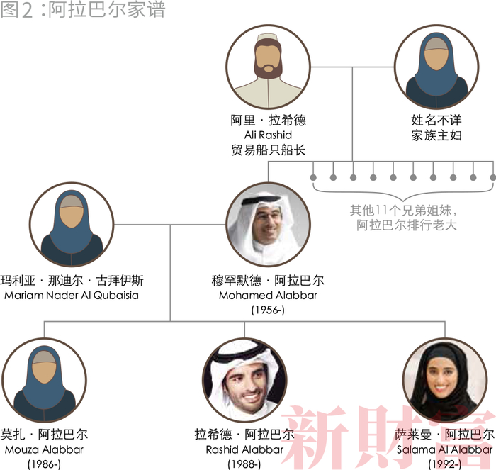 阿拉巴尔作为谢赫·穆罕默德的最高顾问,其取得的商业奇迹在很大程度有赖于后者信任和支持。中东商业精英通常备受统治者青睐。在迪拜,有一条清晰可辨的自上而下的沟通渠道,上至统治者及近亲,下至忠诚的亲属,形成一个金字塔式的沟通网络。这也印证了阿联酋建立的世袭制和专家治国并存的现代化治理体系。