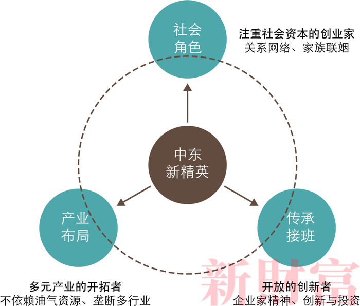 根据福布斯数据,中东亿万富豪中另有38%是白手起家,即以阿拉巴尔为代表的“新精英”。他们在欧美名校接受高等教育,通过自身奋斗打造全新的商业帝国,因应中东的社会环境,其中一部分人与王室家族建立起互相信任的紧密纽带,形成拥有经济实力、人脉网络和共享文化的“新精英”群体。“新精英”往往比政治精英更现实,力促与全球发达国家之间的交往,但也会在某些方面与统治者存在利益冲突。“新精英”群体的发展和壮大,在阿联酋现代化进程中发挥了重要作用。