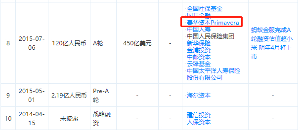 根据当时公开资料显示,2015年春华资本在蚂蚁估值450亿美元时参与了A轮融资。