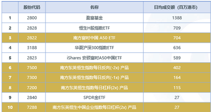 南方东英是香港知名的交易所买卖产品(ETP)发行商,在产品发行和创新上走在市场前沿。2018年初至2019年底两年间,香港前十大最活跃成交ETP排名中,有一半的产品由南方东英管理,从经验和能力上看,具备了管理好3033.HK的强劲实力。