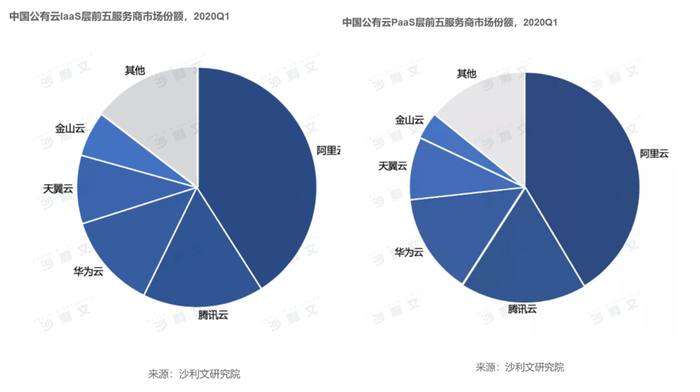 根据Frost & Sullivan对于中国公有云市场的调查研究结果显示,2020年Q1无论是IaaS还是PaaS市场,阿里的份额都远超腾讯。