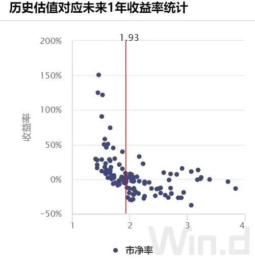 纵轴代表的是,以对应市净率买入,一年之后能拿到的收益。