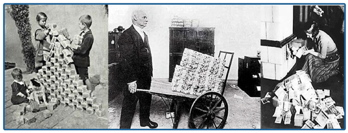 债务搞定了,可也引发了世界历史上最严重的一次通胀,马克相对于美元贬值了99.99999997%,物价上涨了38.7亿倍,直到魏玛政府最终宣布原有货币体系破产,灾难才得以终结。