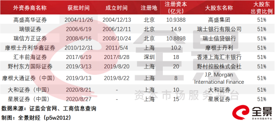 2020年4月1日起,中国再次放开外资准入条件,全面取消证券公司外资股比限制。随着8月28日和9月1日证监会先后公布核准设立大和证券和星展证券的文件,短短三天,外资控股券商增加到了9家。
