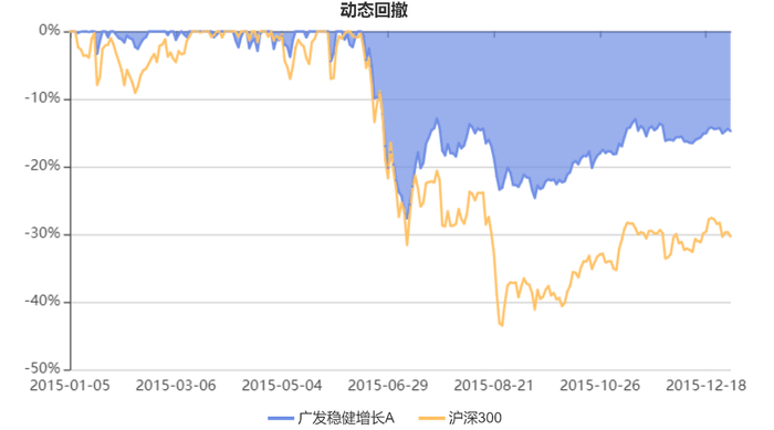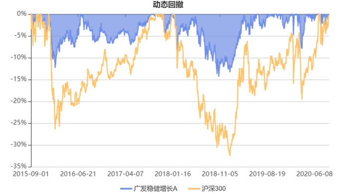 从风险的角度,广发稳健增长(270002)的区间最大回撤大约为沪深300的二分之一: