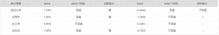 为了证明这个观点,我们单独针对富国天惠利用HM模型分析下基金的选股能力是否退化。下图为富国天惠的HM模型分析结果,从图中我们可以清晰的看到自2016年1月起,基金的选股能力持续下行,甚至近3年选股能力退化为不显著。