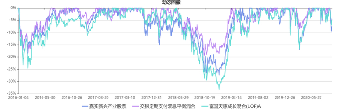 为了证明这个观点,我们使用之前笔者点评的交银定期支付双息平衡混合(5星)以及嘉实新兴产业股票(4星)与同期的富国天惠成长混合(3星)进行对比,可以更加明显地反映出来,富国天惠成长混合已经不是一只优秀的基金了。