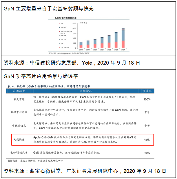 射频领域手机等低功率倾向于GaAs、宏基站等高功率倾向于GaN。