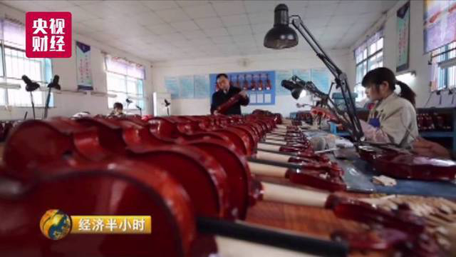 中国出口提琴的份额,黄桥镇一家就占了50%还要多,这些销往全国和欧美90多个国家的提琴,每年能给黄桥镇带来24亿的收入,占到了全镇经济总量的20%左右。