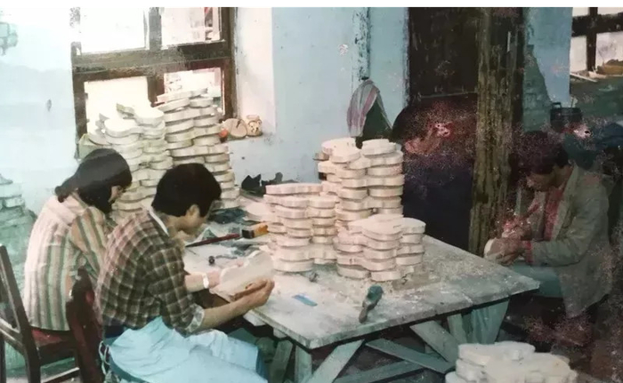 上世纪80年代,溪桥乐器厂简陋的生产环境。1988,这里已经成为全国同行业的第一,产量占全国的20%