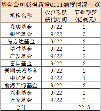 9月22日,QDII额度迎来两年多时间以来首次扩容。