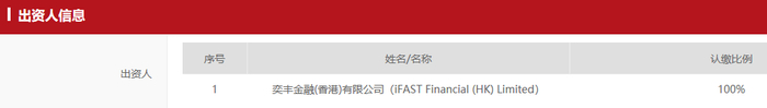 我们来看看这家外资私募的股东,上海首奕投资由奕丰金融(香港)有限公司(iFAST Financial (HK) Limited)全资控股。