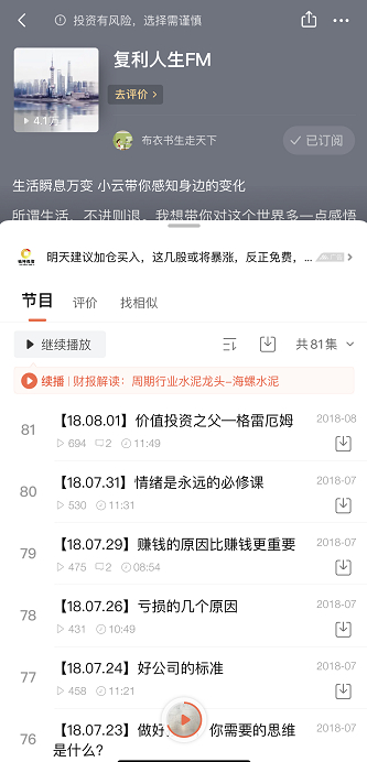 那时刚入职不久,我还是助理的角色,为了发挥我的声音优势,经理师傅指导我来运作一档投资主题的电台节目。我做过解析年报系列投资大师故事系列......在不断的阅读与写稿中,我也在慢慢汲取到大师的思想,形成自己的投资逻辑。
