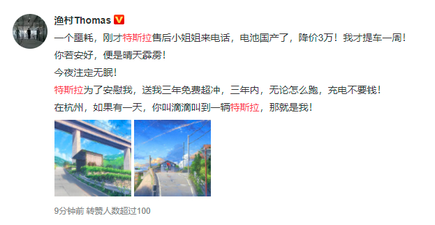 她写道,“非常感谢车主们选择特斯拉,也很理解大家的心情。价格调整是高度保密的工作,需要反复测算,只有极少数人参加,我们能做的是一旦最终确认就第一时间准备内部程序并尽快告知大家,因为无论任何时候公布都会有一批近期提车的消费者受影响。特斯拉的员工中有很多车主,也有不少员工在9月份刚刚提了自己的新车。他们和普通消费者一样都适用于同样的价格政策。除了极少数参与价格测算的员工,全体同事几乎是和消费者同时得知价格调整的信息,因此确实不会存在工作人员故意隐瞒和误导消费者的情况。我们非常重视车主们的体验和感受,会加大提升各种软硬件设施以及能力。提升导航,音乐播放等等本土化软件的开发,加大布局充电服务网络,让车主们真正享受到高科技产品带来的驾乘乐趣。感谢您选择了特斯拉,我们致力于让产品给您带来物超所值的体验,这也是我们一直为之奋斗的目标。”