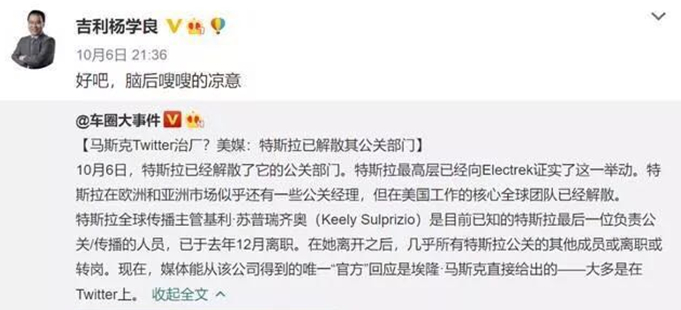 尽管全球范围内,特斯拉在欧洲和亚洲地区还保留有部分公关经理,但在美国的核心全球团队已经解散,几乎所有特斯拉公关的其他成员或离职或转岗。