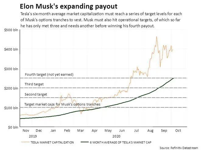但由于其薪酬奖励由一系列基于市值和运营目标的潜在股票期权奖励组成,而要确保他获得第四批资金,特斯拉还必须达到与营收或盈利相关的目标,而这些指标有希望在特斯拉尚未公布的第3季度财报中达成。