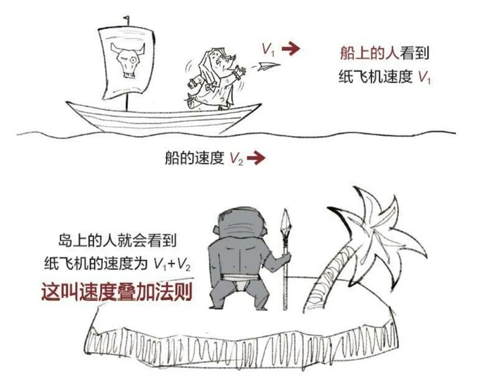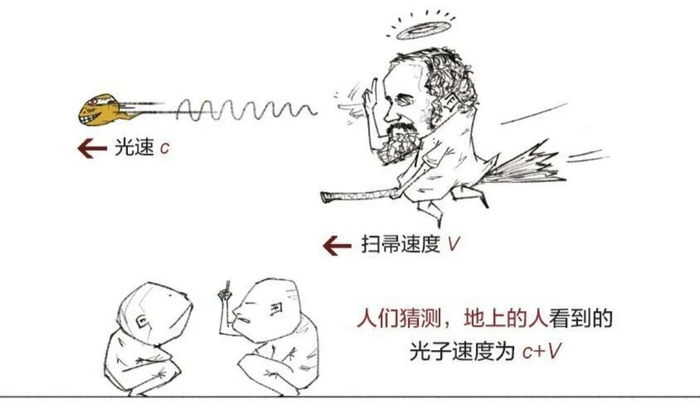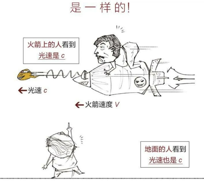 书的具体内容部分就不和大家做过多展开了,用纯文字的方法写几行估计大家就看不下去了,这里主要想和大家分享的是作者的讲述方式,这里随便放几张图让大家感受下——以光速恒定为例: