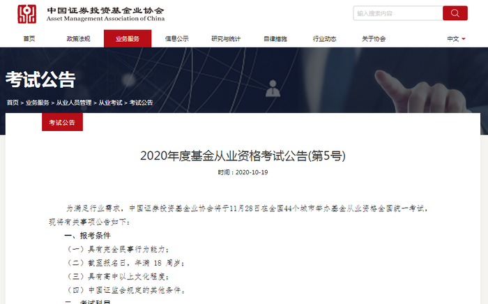为满足行业需求,中国证券投资基金业协会将于11月28日在全国44个城市举办基金从业资格全国统一考试