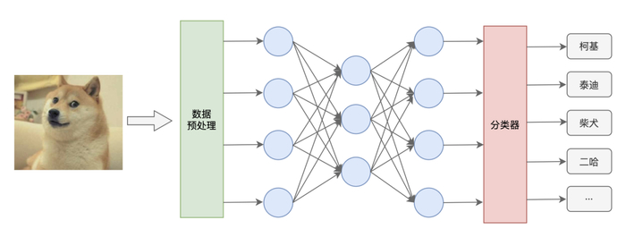 听大白告诉我说,我们这个神经网络是一个图像识别的AI程序,只要给我们输入一张狗的照片,我们就能告诉你这是一只柯基,还是泰迪、柴犬、二哈···