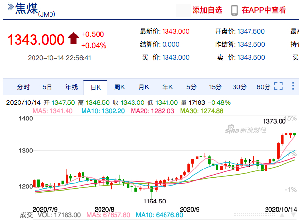 10月初,焦煤价格上涨5%,动力煤价格下降1.8%