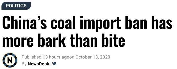“中国的煤炭禁运更多是吠叫而非真咬”