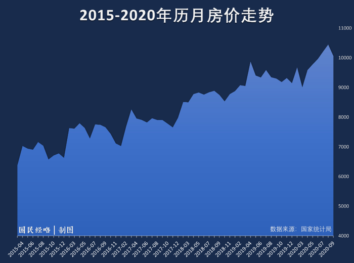 以此进行折算,2020年前三季度,全国商品房均价达到9878元,离万元大关只有一步之遥。
