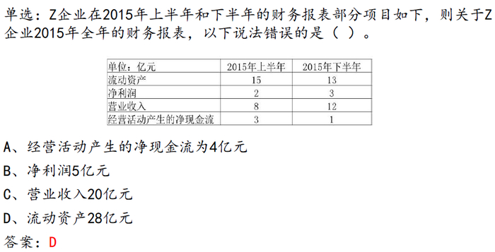 此题考核的是财务报表,但是并非单独考核某一种财务报表,而是将资产负债表、利润表、现金流量表等三类财务报表放在同一题中进行考核,由于三类报表的属性和内涵差异较大,要理解此题仍需系统了解三张报表的具体知识点和逻辑关系。这样的话,即使再增加一些干扰项和新的考点,考生同样可以应对。
