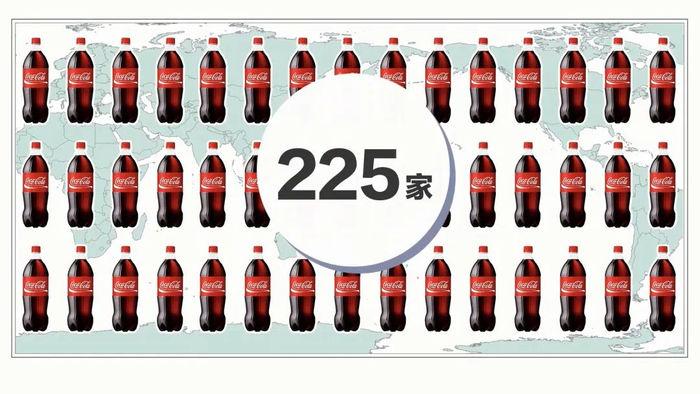 全球有大约 225 个这样的装瓶伙伴公司,他们不属于可口可乐,自负盈亏。