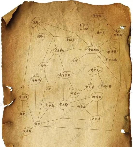 量子学派花了三个月时间搜集整理,梳理出一张人物之间的“六度关系”图。