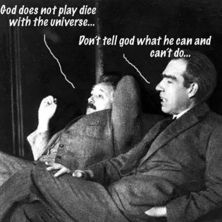 也是在这次会议上,爱因斯坦道出世纪名言“上帝不掷骰子”,玻尔则针锋相对“爱因斯坦,别指挥上帝怎么做”。(往期回顾☞爱因斯坦与玻尔:孤胆英雄与社团大哥的相爱相杀)