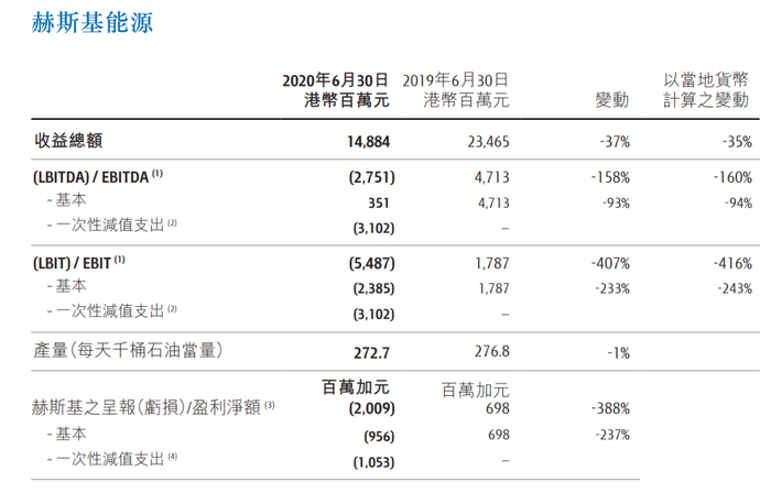 2018年,赫斯基向能源公司MEG抛出敌意收购要约失败,之后业绩一路下滑。2020年上半年,赫斯基录得历史最差业绩,经营亏润23.85亿港元,一次性减值31.02亿港元,股价则半年暴跌71%,李嘉诚家族持有股权价值蒸发249亿元人民币。