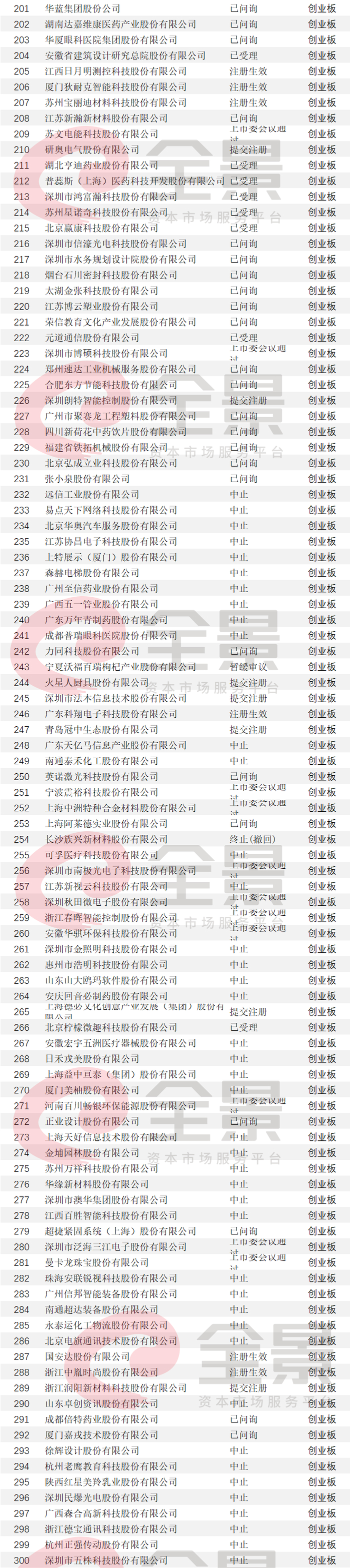 据证监会最新数据显示,截止目前,占比最高的是已反馈企业,共计86家,占比42%;预披露更新企业60家,占比29%;已通过发审会51家,占比25%。