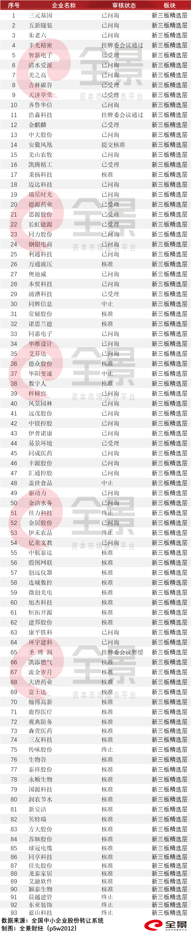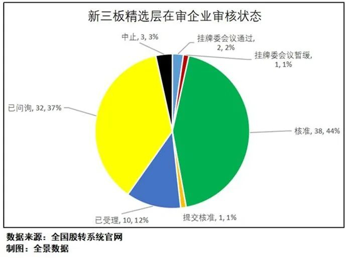 据全国中小企业股份转让系统网站公开数据显示,截止目前,已核准38家;问询32家;已受理10家。