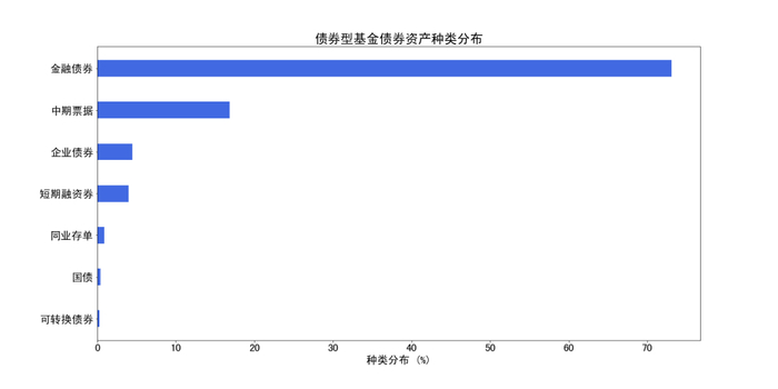 债券型基金投资最多的品种为金融债券,规模占比超过了债券资产的70%。