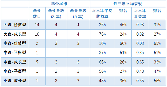权益类基金的投资风格偏大盘-成长,规模比重达到了76%。